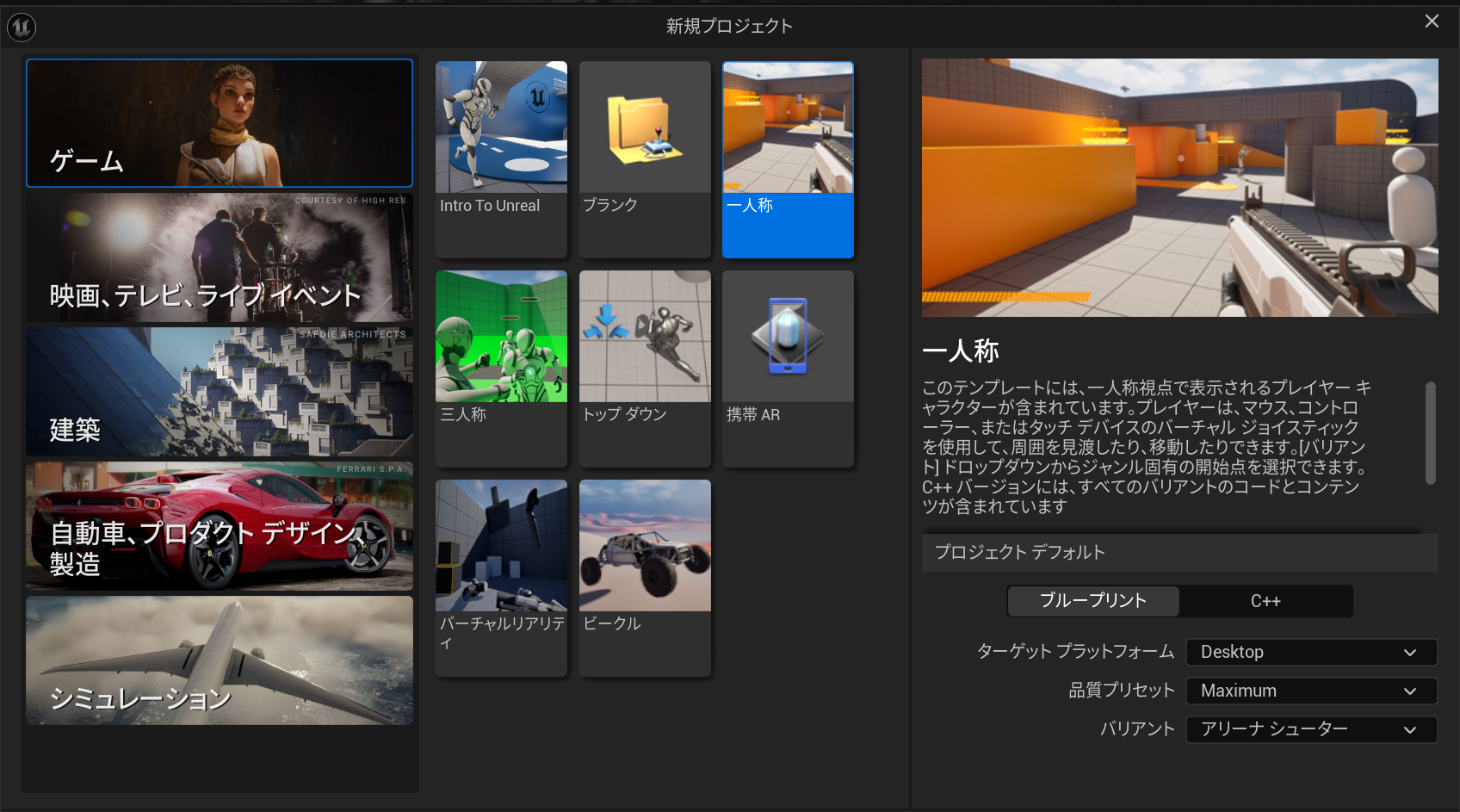 First Person (一人称) テンプレートにバリアントを追加して作成