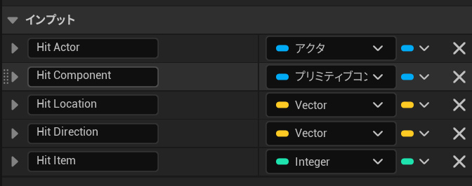 そして、利用箇所の一つに Break Hit Result があるので、そこの Hit Item をつなぎます。