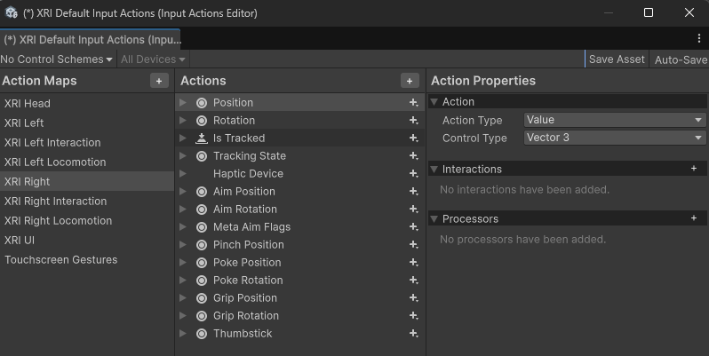 Input Action ManagerはXRI Default Input Systemという Input System 設定を読み込んでいる。