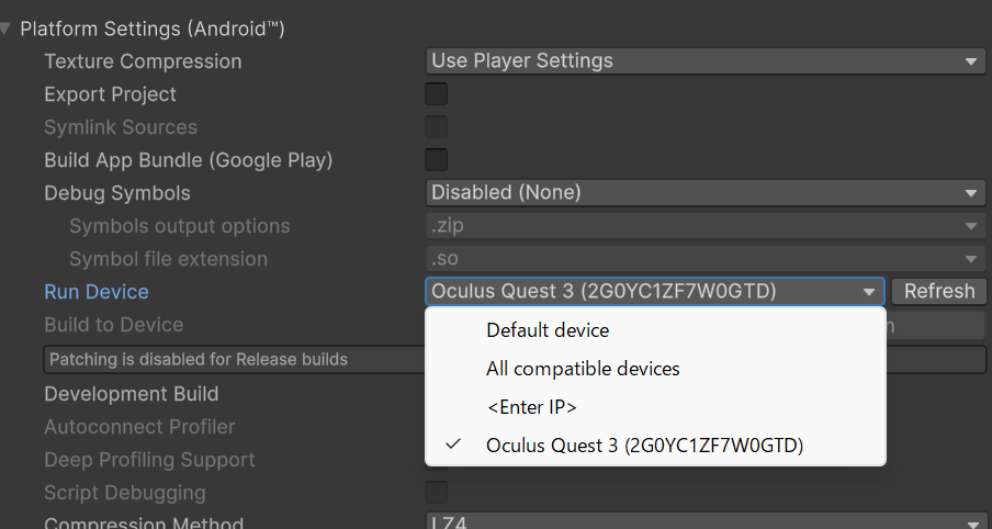 - Quest 3 を接続して Refresh すると出てくる