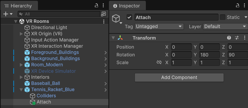 - ラケットの XR Grab Interactable の Attach Transform に