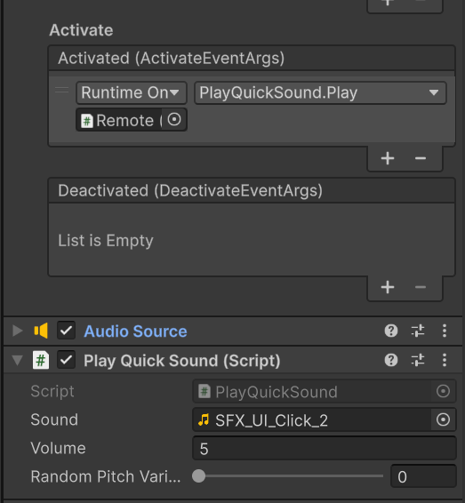 Remote 、ここでは Remote の Activate イベント時に音を鳴らす