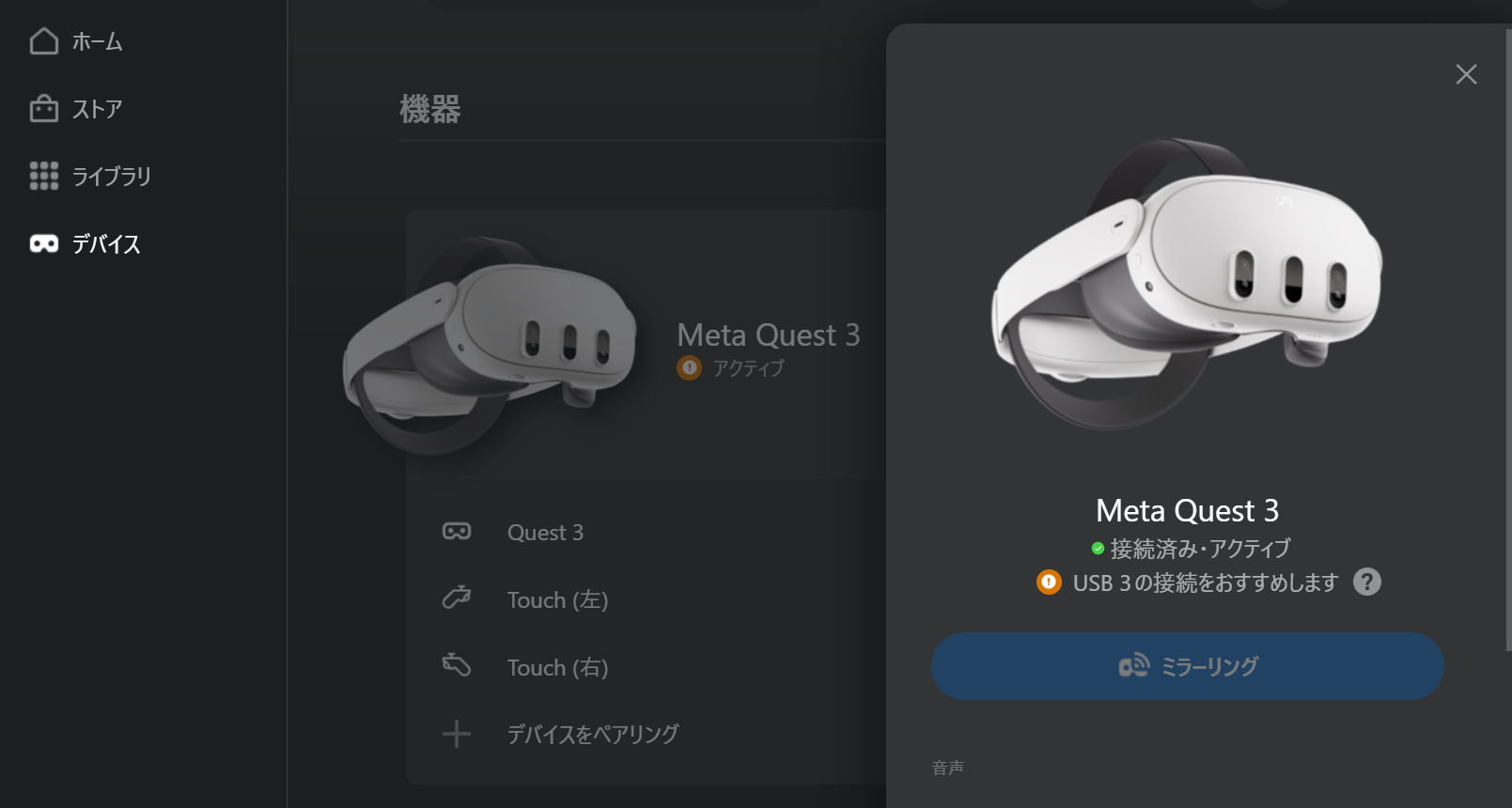 おそらく、Quest 3 を USB ケーブルで接続した時に「接続テスト」のようなステップがあります。 そこで接続確認ができていれば問題ありません。